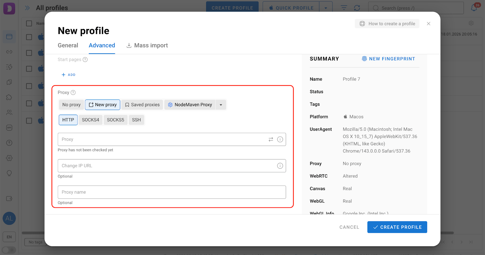 First of all, it allows the creation of multiple accounts simultaneously and easy switching between them. Each profile generates a unique digital fingerprint, completely separating it from other accounts. This way, a ban on one account does not affect the others.